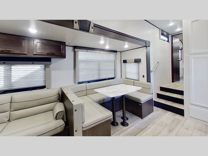 Sleeps 5 Slides 2 Length 32 ft 10 in Ext Width 8 ft GVWR 12000 lbs Dry Weight 9250 lbs Fresh Water Capacity 50 gals Grey Water Capacity 40 gals Black Water Capacity 40 gals Tire Size 15" Available Beds RV Queen Refrigerator Type 12V Cooktop Burners 3 Shower Size 34" x 34" Number of Awnings 1 Axle Weight 6000 lbs LP Tank Capacity 30 lbs Water Heater Capacity 6 gal Water Heater Type Gas AC BTU 15000 btu TV Info LR 40" TV Awning Info Power w/LED Strip Axle Count 2 Number of LP Tanks 2 Shower Type Radius Electrical Service 30 amp Similar Floorplans