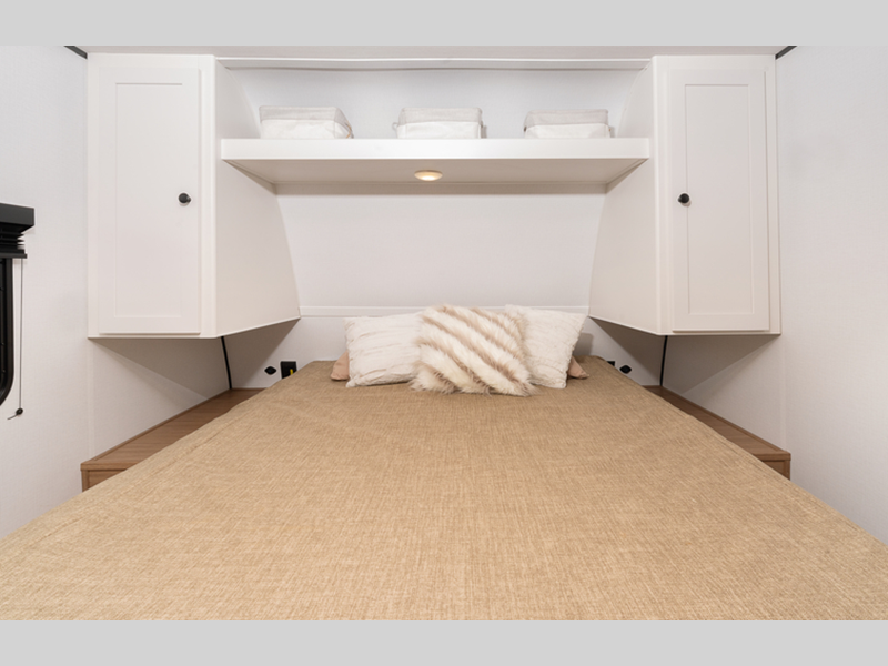 Sleeps 5 Length 21 ft 5 in Ext Height 10 ft 5 in Interior Color Cedar Frost Hitch Weight 400 lbs Dry Weight 3530 lbs Cargo Capacity 1270 lbs Fresh Water Capacity 37 gals Grey Water Capacity 30 gals Black Water Capacity 30 gals Tire Size ST235/75R15C Furnace BTU 20000 btu Number Of Bunks 2 Available Beds Queen Refrigerator Type Large Double Door 12V Refrigerator Size 8 cu ft Cooktop Burners 2 Number of Awnings 1 LP Tank Capacity 20 lbs Water Heater Type Girard Tankless AC BTU 13500 btu Axle Count 1 Number of LP Tanks 1 Shower Type Standard Similar Floorplans